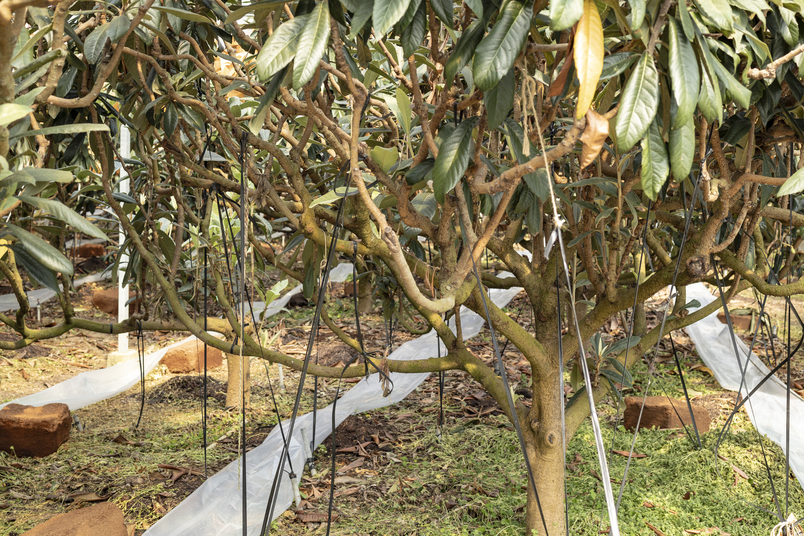 森部さんのハウスでは除草剤を使わないことで、その利点を最大化しているのだそう。除草剤を使用すると、土が固くなり、根のすこやかな成長が妨げられるからです。その分、夏場の雑草対策に時間と労力が割かれますが、おいしいびわを作るためには欠かせない作業のひとつだと言います。