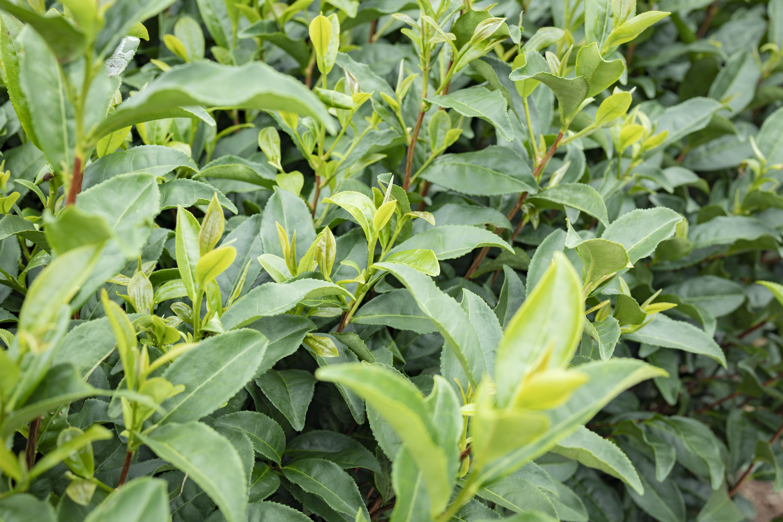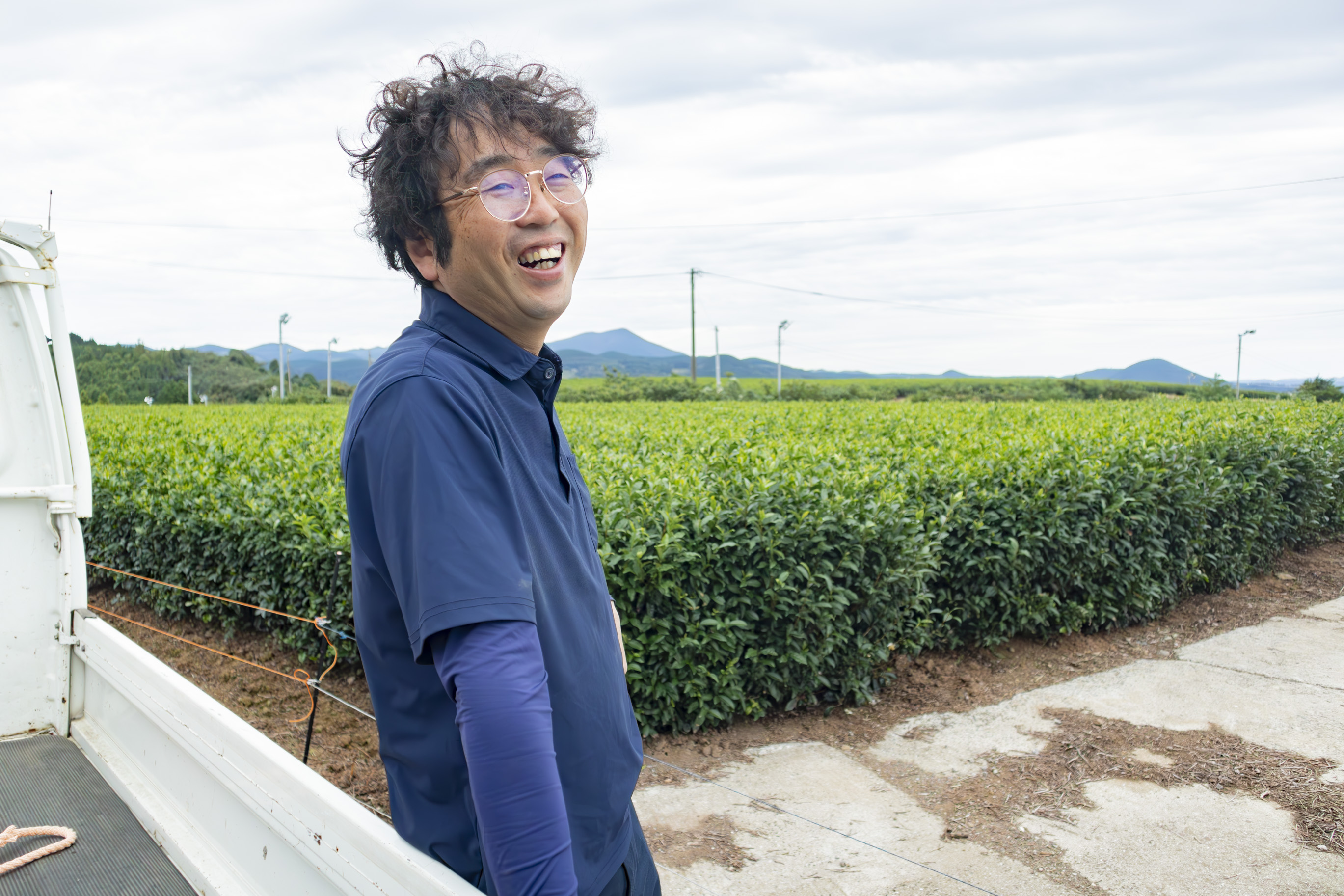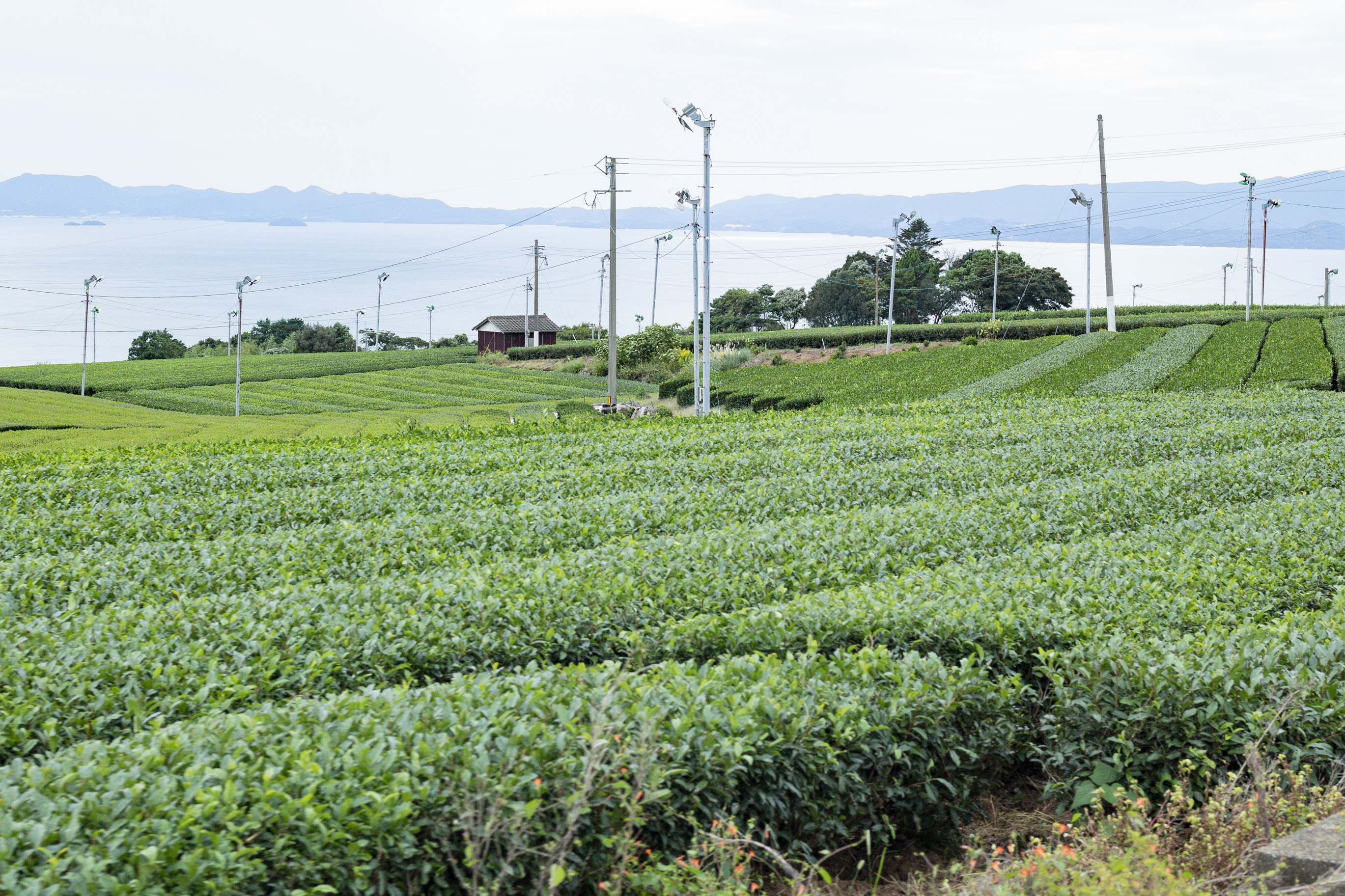 海と丘陵に抱かれた茶畑で