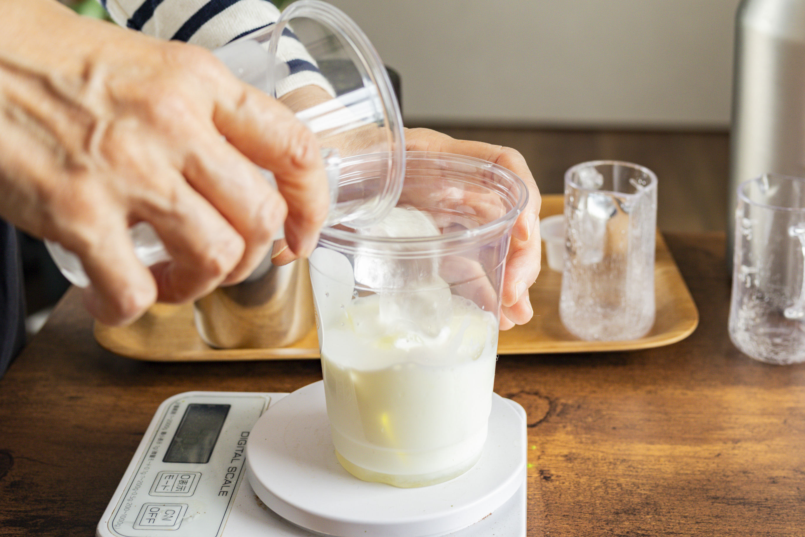 ③抹茶を牛乳に注ぎ、完成!