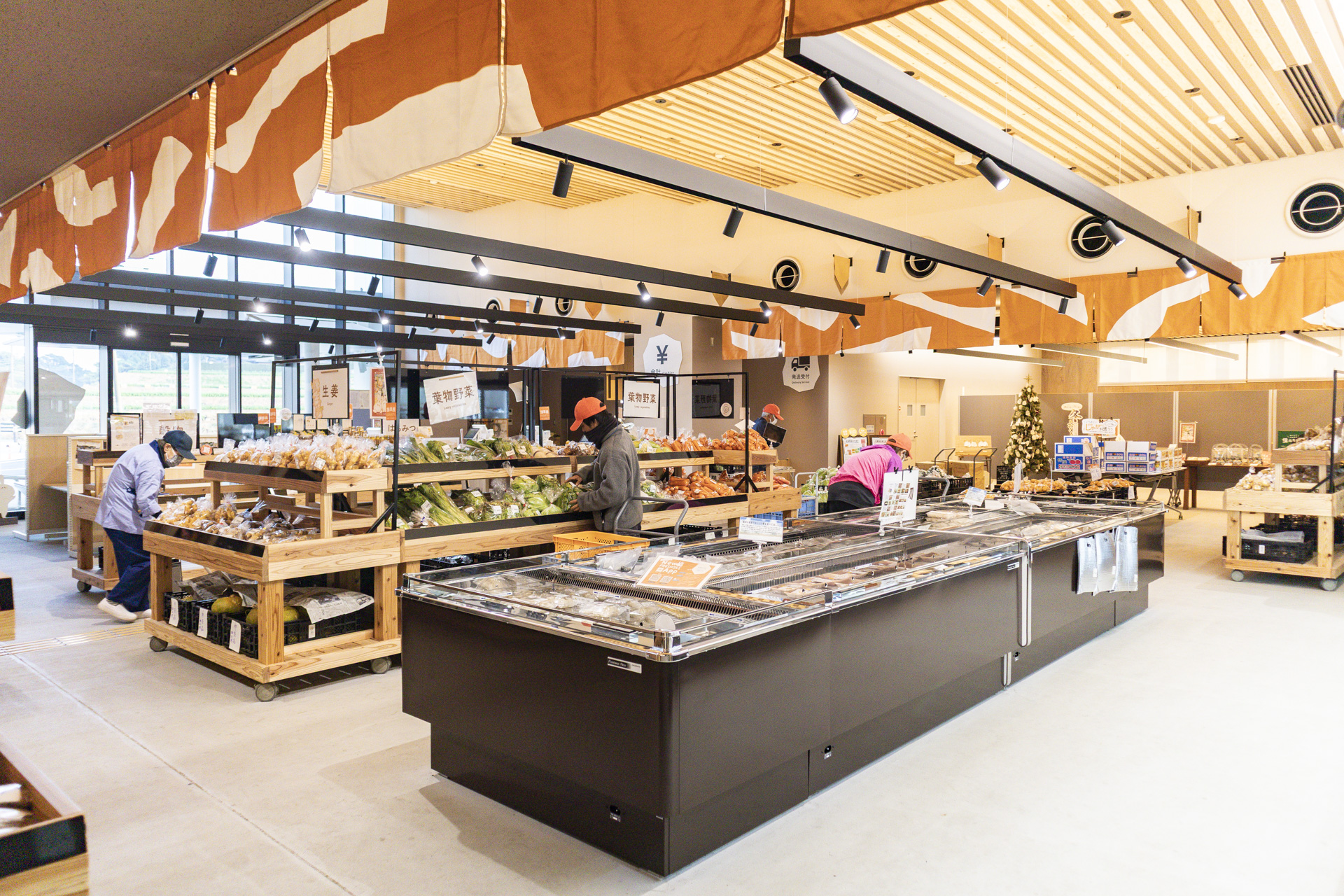 店のキーワードは、「地元でとれたものを、地元でいただく」。その言葉どおり、店内には、にんじん、玉ねぎ、生姜、葉物野菜から、牡蠣などの水産品、カーネーションなどの切り花、手作りのお弁当やお総菜、特産品を使用した加工品まで、地元・諫早産にこだわった商品が並んでいます。(※商品のラインナップは季節により異なります)