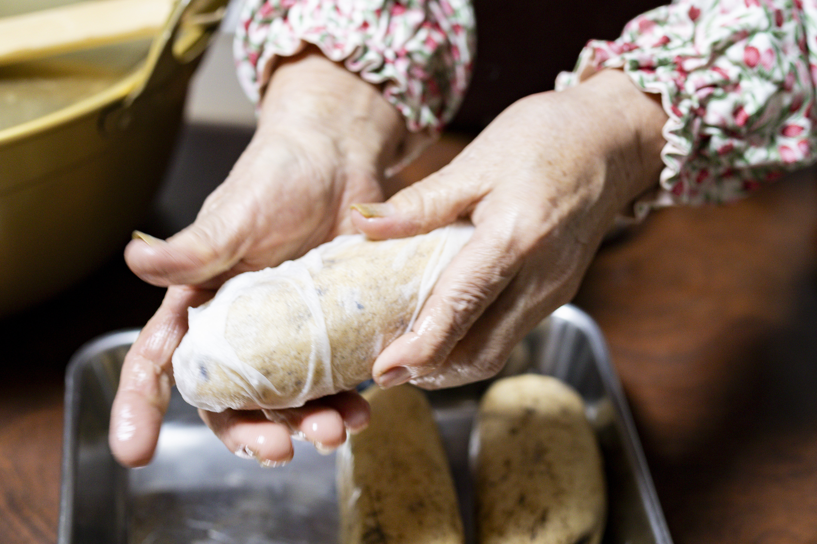泥を落とした唐比れんこんを節で切り分け、濡れたキッチンペーパーとラップで包みます。1週間ほど保存が可能です。